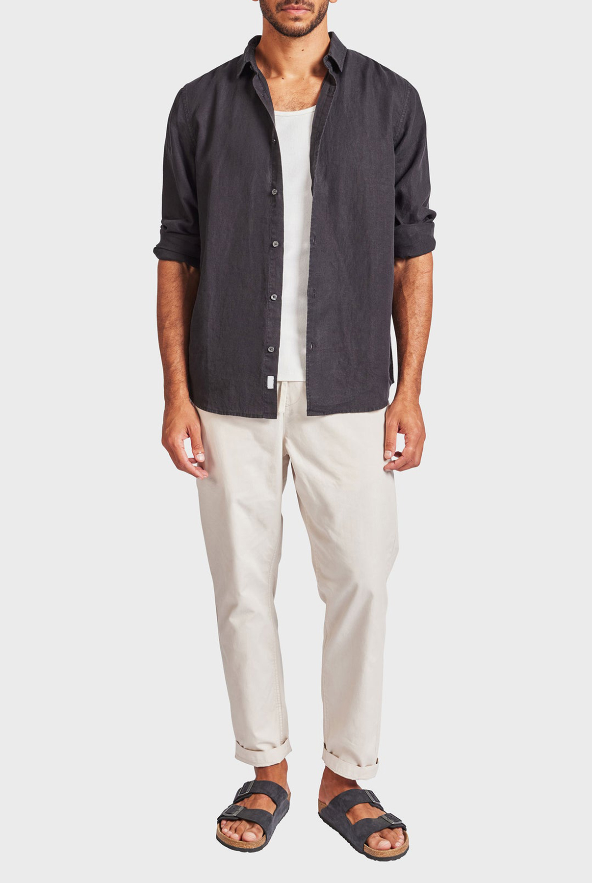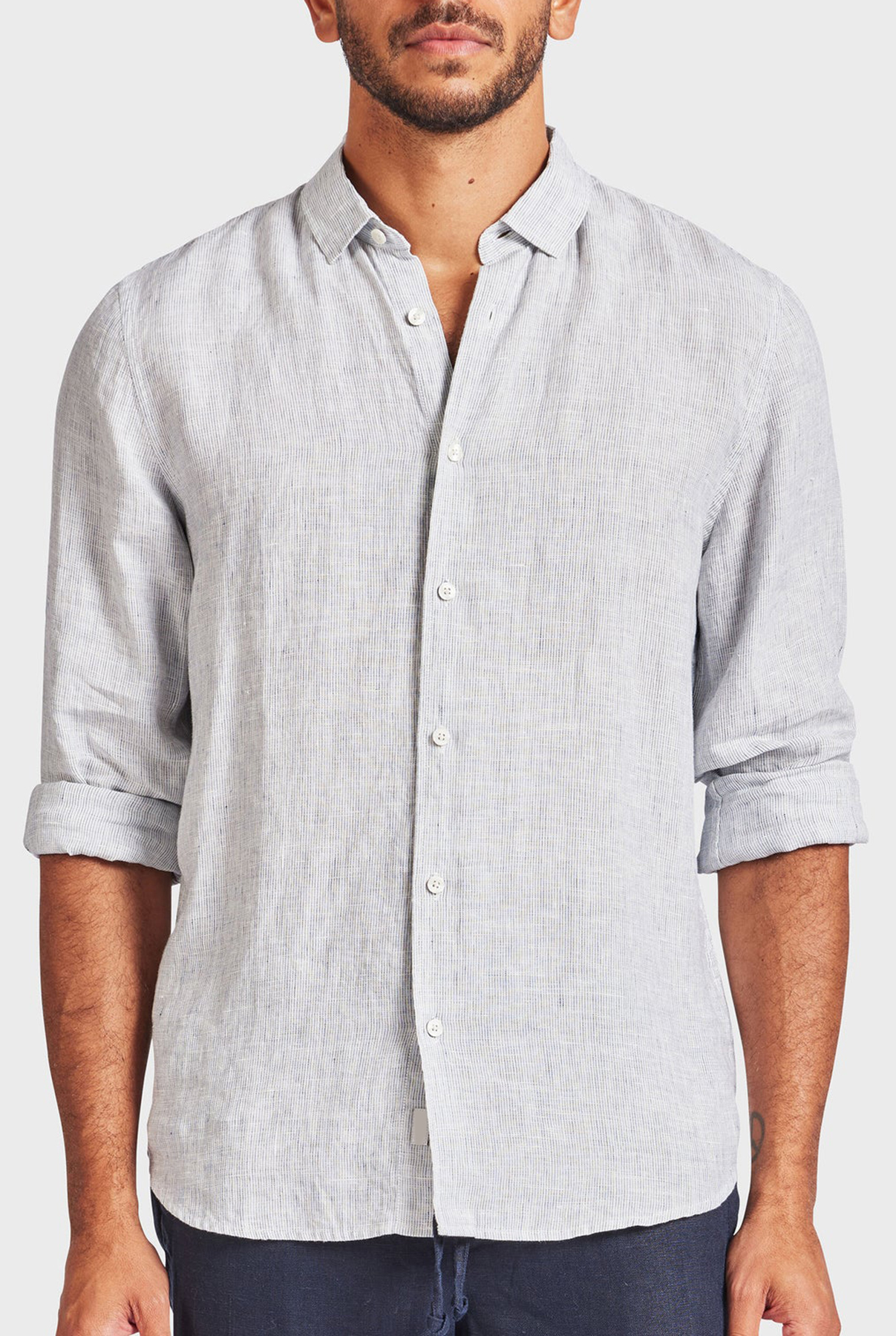 Constructed using premium fine linen fabrication, this classic plain option had a secret wash for extra soft wearability. The building block piece for every wardrobe.