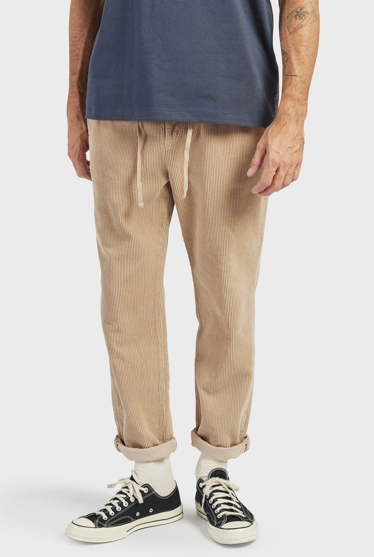 The pant is the perfect casual winter style, with its vintage dye and wash, elastic drawcord waist, relaxed fit and straight knee to hem shape make it an effortless season style. Wear with a crew neck knit or casual jacket for a chic winter look.